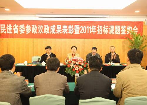 4月下旬,民進江蘇省委參政議政成果表彰暨2011年招標課題簽約會議在南京舉行,民進全省各省轄市委、省直工委及有關地區組織領導、省委各專門工作委員會正副主任、骨干成員和民進省委機關部門負責人近60人出席。民進省委秘書長王魯彬宣讀了對參政議政先進單位的表彰決定,他指出,民進江蘇省各級組織在建言獻策、課題調研、社情民意等方面做了許多工作,省委各專委會和各市委會提交的調研材料被民進省委采用,并作為大會發言和集體提案提交省政協會議及有關政府部門,他還特別強調指出,在參政議政工作中,民進中科院南京土壤所支部是唯一受表彰的基層支部。